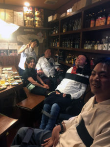 4台の電動車椅子が入ると店内の大半を占領して他の客が動きづらくなるのですが、「問題ないッス!」という大将の厚意でみんなで旨い焼き鳥を堪能しました。